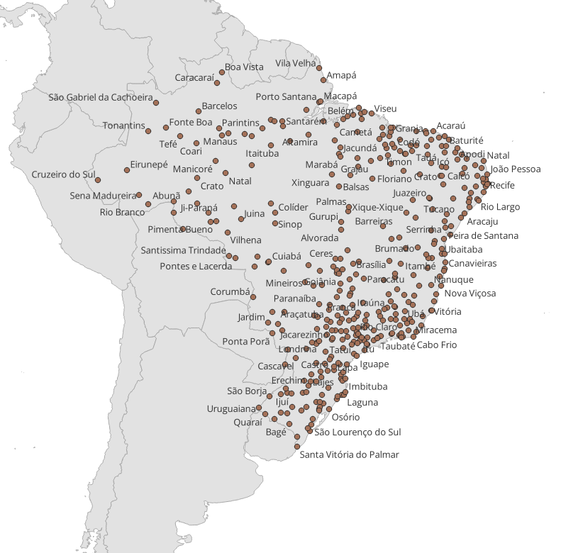 Чтобы попрактиковаться, для примера настроим иерархию подписей городов Бразилии, которые я взял в наборе данных Natural Earth из слоя ne_10m_populated_places. В нашем примере мы будем менять размер шрифта в зависимости от значимости города.