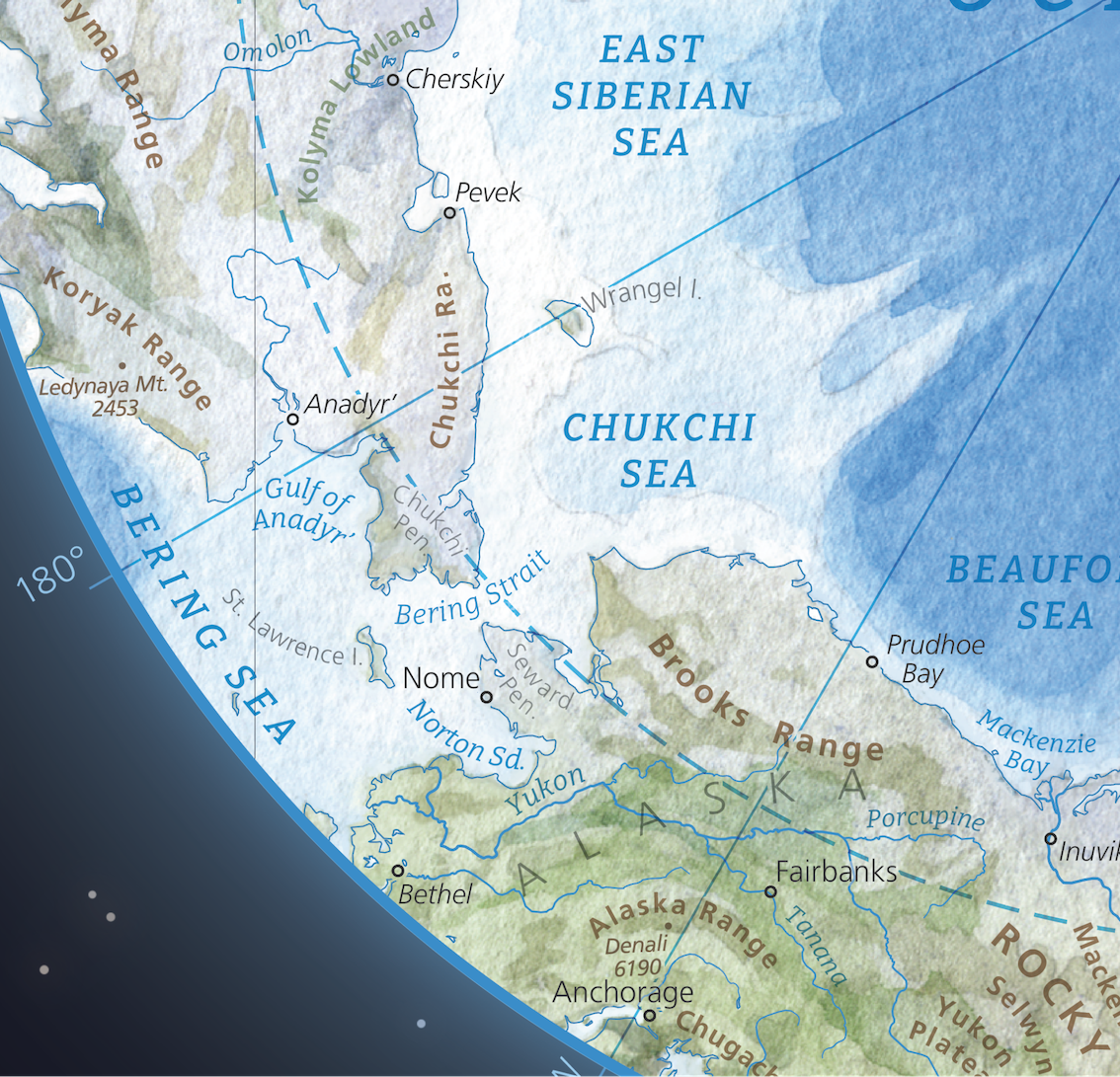 Карта выше — пример того, как много информации могут давать шрифты. С помощью цвета можно различить города (подписаны черным цветом), элементы рельефа (подписаны коричневым) и водные объекты (подписаны синим). С помощью размера и стиля шрифта считывается информация об иерархии: размер шрифтов морей больше, чем у заливов, а у заливов больше, чем у рек.