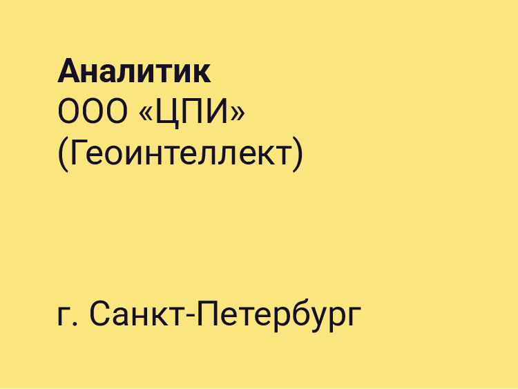 Компания ЦПИ (Геоинтеллект), работающая более 20 лет на рынке геоаналитики, геоинформационных систем и решений для коммерческих и государственных организаций, ищет аналитика для реализации проектов с применением методов машинного обучения.