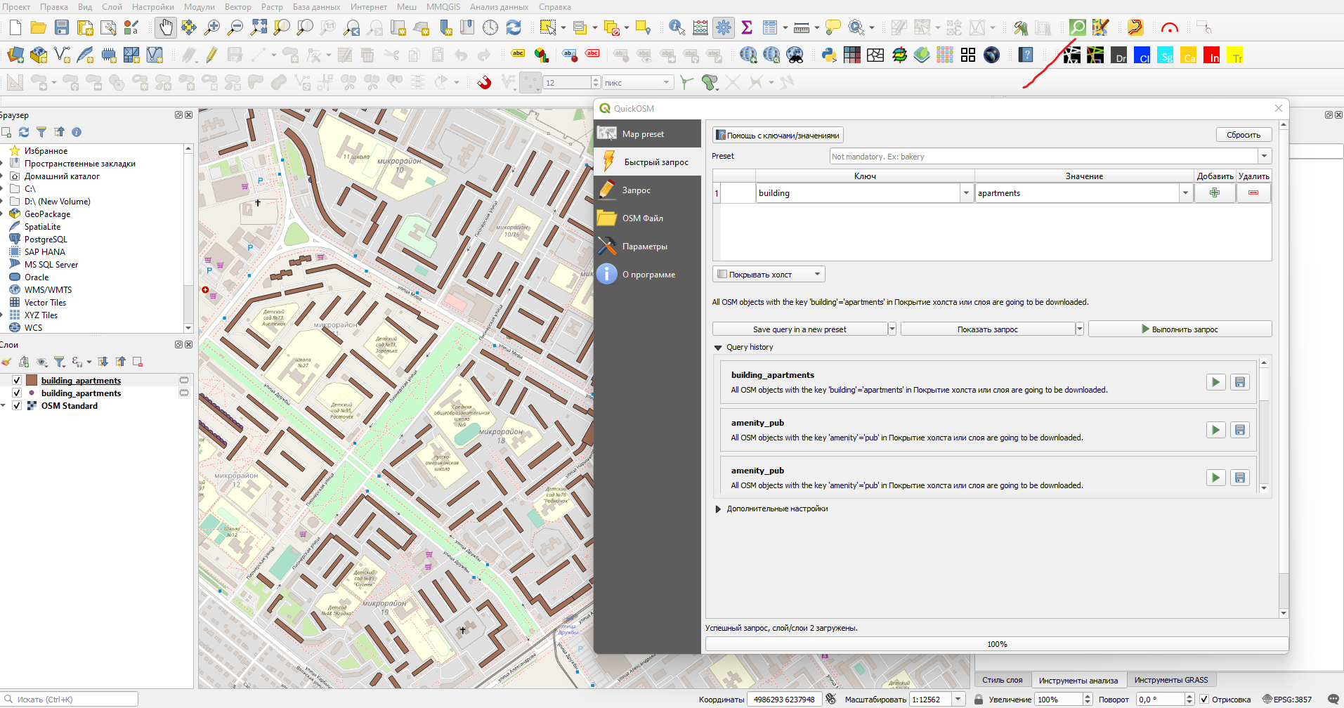 OpenStreetMap — огромная бесплатная кладовая векторных данных, созданных пользователями (возможно, даже вы в этом поучаствовали). Плагин QuickOSM позволяет скачивать векторные слои из OSM прямо в QGIS, быстро и сразу для интересующей вас территории.