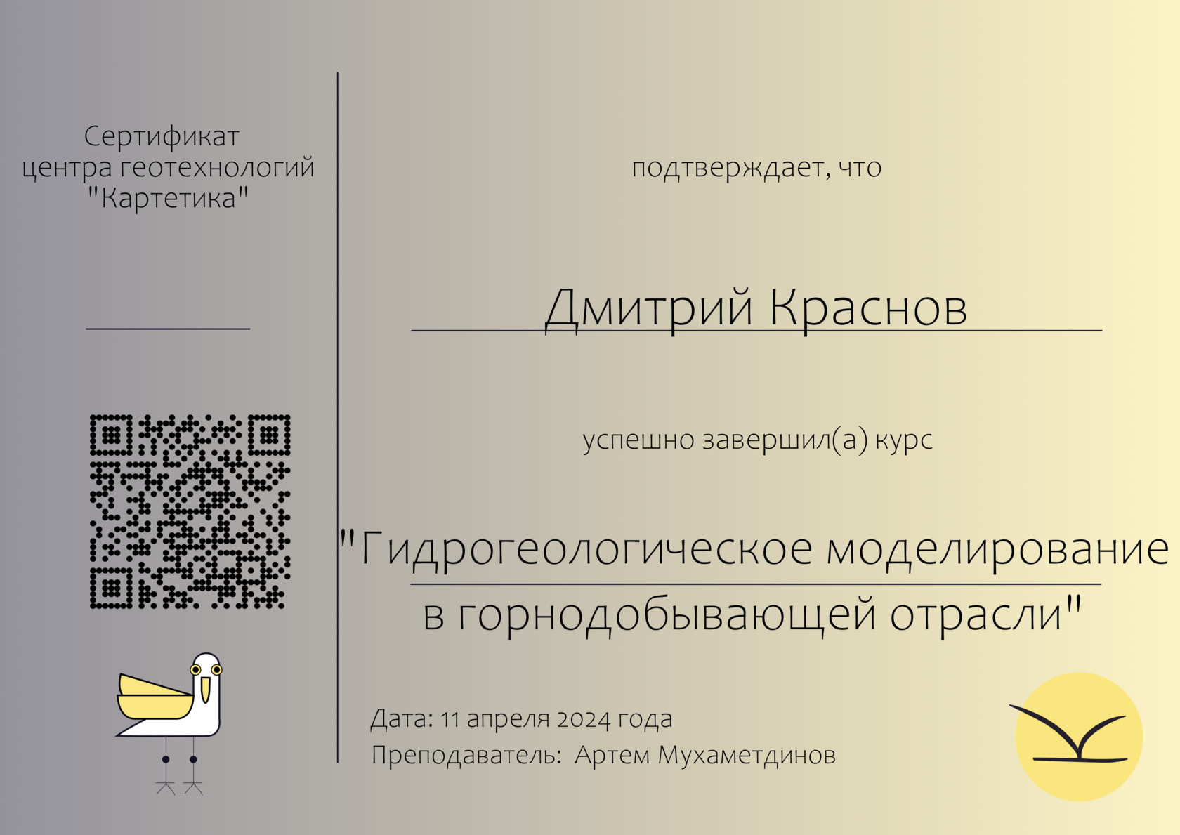 Страница подтверждает оригинальность сертификата, человек действительно прошёл данный курс в центре геотехнологий "Картетика"