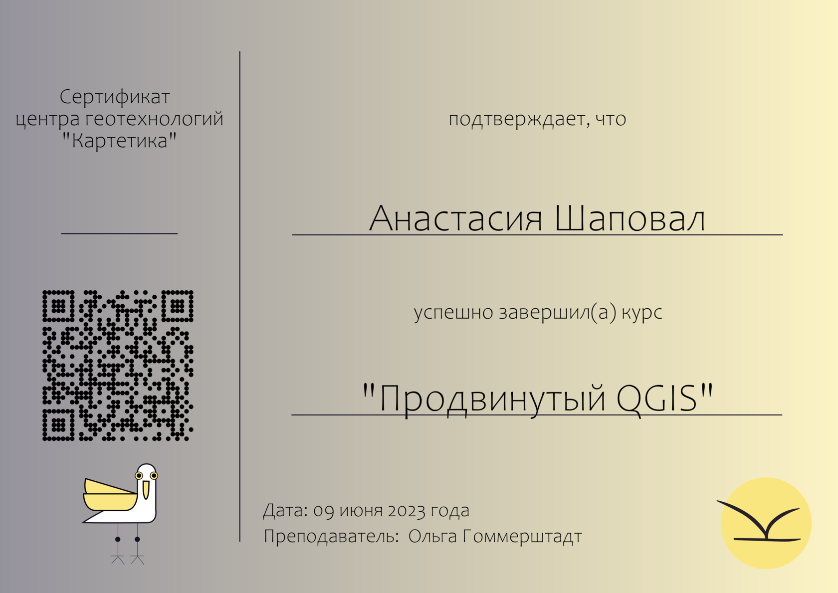 Страница подтверждает оригинальность сертификата, человек действительно прошёл данный курс в центре геотехнологий "Картетика"